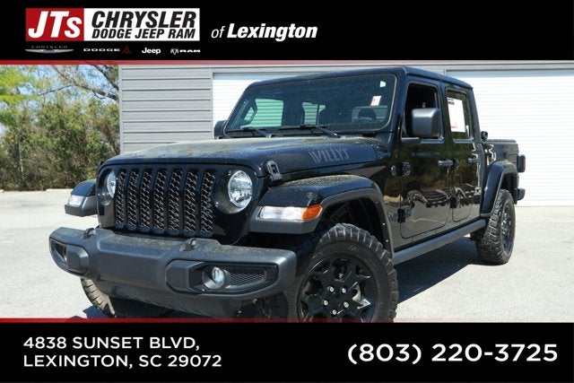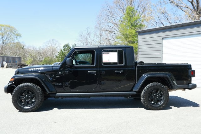 Only 33,676 Miles! Scores 22 Highway MPG and 17 City MPG! This Jeep Gladiator delivers a Regular Unleaded V-6 3.6 L/220 engine powering this Automatic transmission. WHEELS: 17" X 7.5" BLACK ALUMINUM (STD), TRANSMISSION: 8-SPEED AUTOMATIC (850RE) -inc: Transmission Skid Plate, Selec-Speed Control, QUICK ORDER PACKAGE 24W WILLYS -inc: Engine: 3.6L V6 24V VVT UPG I w/ESS, Transmission: 8-Speed Automatic (850RE), Convenience Group, Universal Garage Door Opener, Daytime Running Lamp System, Speed Sensitive Power Locks, Protection Sill Rails, 4-Wheel Drive Decal, Black Grille, Body Color Fender Flares (2-Piece), Front 1-Touch Down Power Windows, Front Heavy Duty Red Accent Shock Absorbers, Security Alarm, Willys, Mold In Color Bumper w/Gloss Black, Automatic Headlamps, Deep Tint Sunscreen Windows, SiriusXM Radio Service, Front Door Locks 2-Door Passive Entry, SiriusXM Satellite Radio, Cluster 7.0" TFT Color Display, For More Info, Call 800-643-2112, Air Conditioning w/Auto Temp Control, Willys Hood Decal, Rear Heavy Duty Red Accent Shock Absorbers, 97 MPH Vehicle Max Speed Calibration, Power Heated Mirrors, Premium Wrapped Steering Wheel, Power Tailgate Lock, Remote Keyless Entry, Sun Visors w/Illuminated Vanity Mirrors.