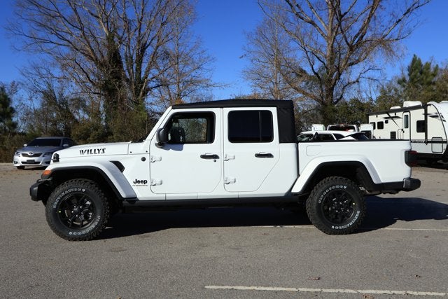 Boasts 22 Highway MPG and 17 City MPG! This Jeep Gladiator boasts a Regular Unleaded V-6 3.6 L/220 engine powering this Automatic transmission. QUICK ORDER PACKAGE 24W WILLYS -inc: 3.6L V6 24V VVT UPG I Engine w/ESS, 8-Speed Automatic 850RE Transmission, LED Taillamps, Protection Sill Rails, 4-Wheel Drive Decal, Black Grille, Body Color Fender Flares (2-Piece), Front Heavy Duty Red Accent Shock Absorbers, Daytime Running Lamps LED Accents, Front LED Fog Lamps, LED Premium Reflector Headlamps, E-Locker Rear Axle, Corning Gorilla Glass, Trailer Hitch Zoom, Class IV Receiver Hitch, Security Alarm, Mold In Color Bumper w/Gloss Black, Advanced Brake Assist, Heavy Duty Engine Cooling, Automatic Headlamps, Air Conditioning w/Auto Temp Control, Deep Tint Sunscreen Windows, Off-Road Plus Mode, Willys Hood Decal, Full Speed Forward Collision Warning Plus, Rear Heavy Duty Red Accent Shock Absorbers, Front Door Locks 2-Door Passive Entry, Cluster 7.0" TFT Color Display, Power Heated Mirrors, Auxiliary Switches, Premium Wrapped Steering Wheel, Sun Visors w/Illuminated Vanity Mirrors, MYFLEXCARE SERVICE PLAN, MOPAR SPRAY IN BEDLINER.