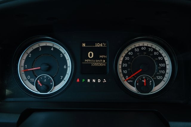 Only 105,535 Miles! Delivers 22 Highway MPG and 15 City MPG! Carfax One-Owner Vehicle. This Ram 1500 delivers a Regular Unleaded V-8 5.7 L/345 engine powering this Automatic transmission. WHEELS: 20" X 9" ALUMINUM CHROME CLAD -inc: Tires: P275/60R20 OWL AS, Full Size Temporary Use Spare Tire, TRANSMISSION: 8-SPEED AUTOMATIC (8HP70), TIRES: P275/60R20 OWL AS.