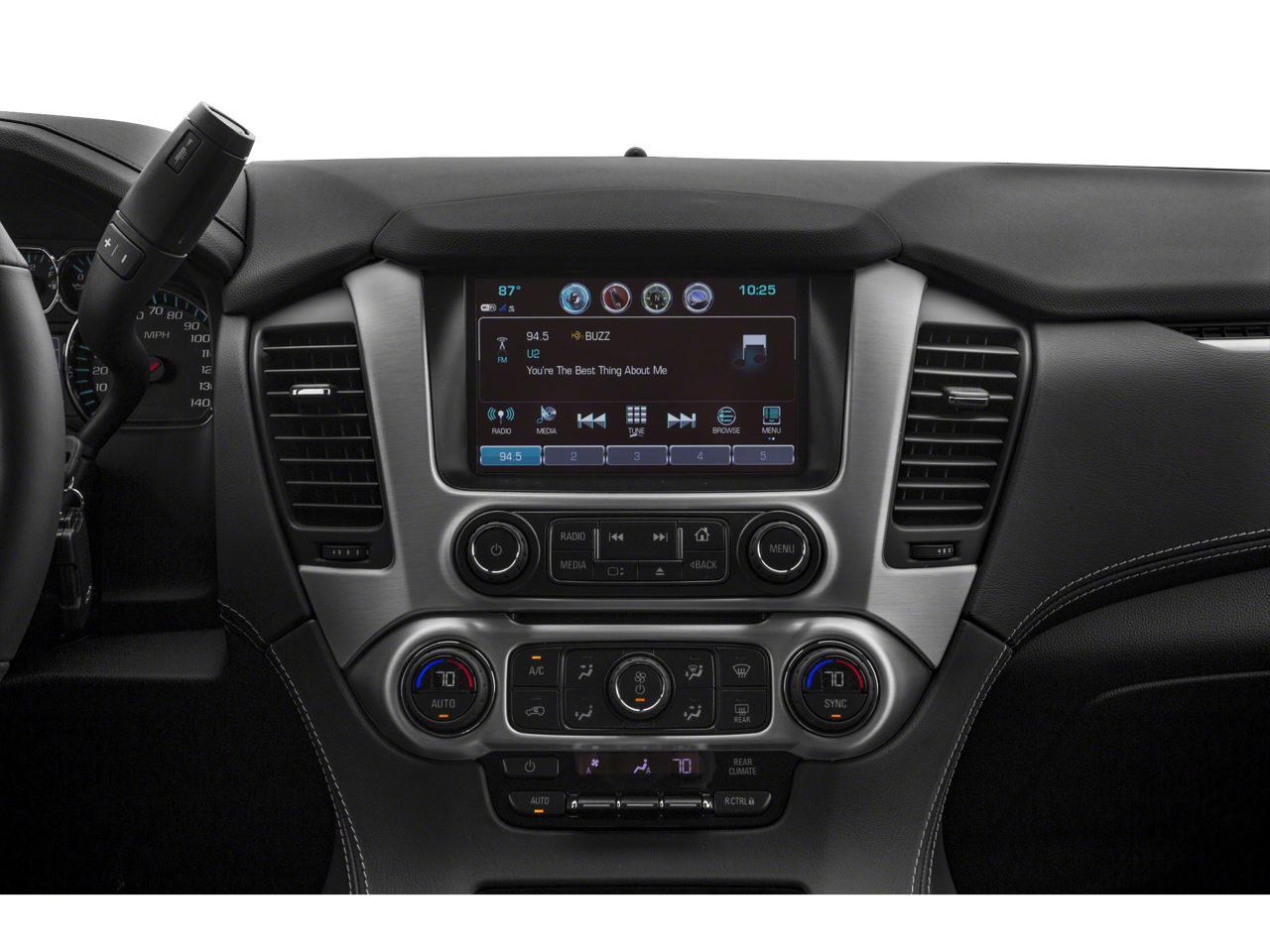 OPEN ROAD PACKAGE includes additional 9 months of SiriusXM Radio and NavTraffic service, (CF5) power sunroof, (U42) rear seat entertainment system and on SLT (IO6) Audio system with navigation, LICENSE PLATE FRONT MOUNTING PACKAGE , SLT PREFERRED EQUIPMENT GROUP Includes Standard Equipment, SEATS, SECOND ROW BUCKET, POWER RELEASE, SEATS, FRONT BUCKET WITH PERFORATED LEATHER-APPOINTED heated and ventilated seat cushions, 12-way power driver and passenger seat includes 6-way power cushions, driver seat 2-position memory, 4-way power lumbar control and power recline (STD), SATIN STEEL METALLIC, REAR AXLE, 3.08 RATIO, MOLDINGS, BRIGHT BODYSIDE, LPO, CHROME GRILLE INSERT (DEALER-INSTALLED), LPO, 22" (55.9 CM) 6-SPOKE SPLIT CHROME WHEELS LPO wheels will come with 4 steel 22" wheels from the factory with alignment specs set to 22" LPO wheel selected (dealer-installed).