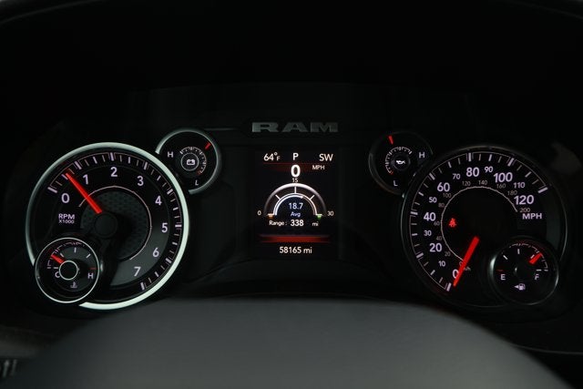 Only 58,075 Miles! Delivers 22 Highway MPG and 15 City MPG! This Ram 1500 delivers a Regular Unleaded V-8 5.7 L/345 engine powering this Automatic transmission. WHEELS: 18" X 8" CAST-ALUMINUM PAINTED (STD), TRANSMISSION: 8-SPEED AUTOMATIC (8HP75), TIRES: 275/65R18 BSW ALL SEASON LRR (STD).