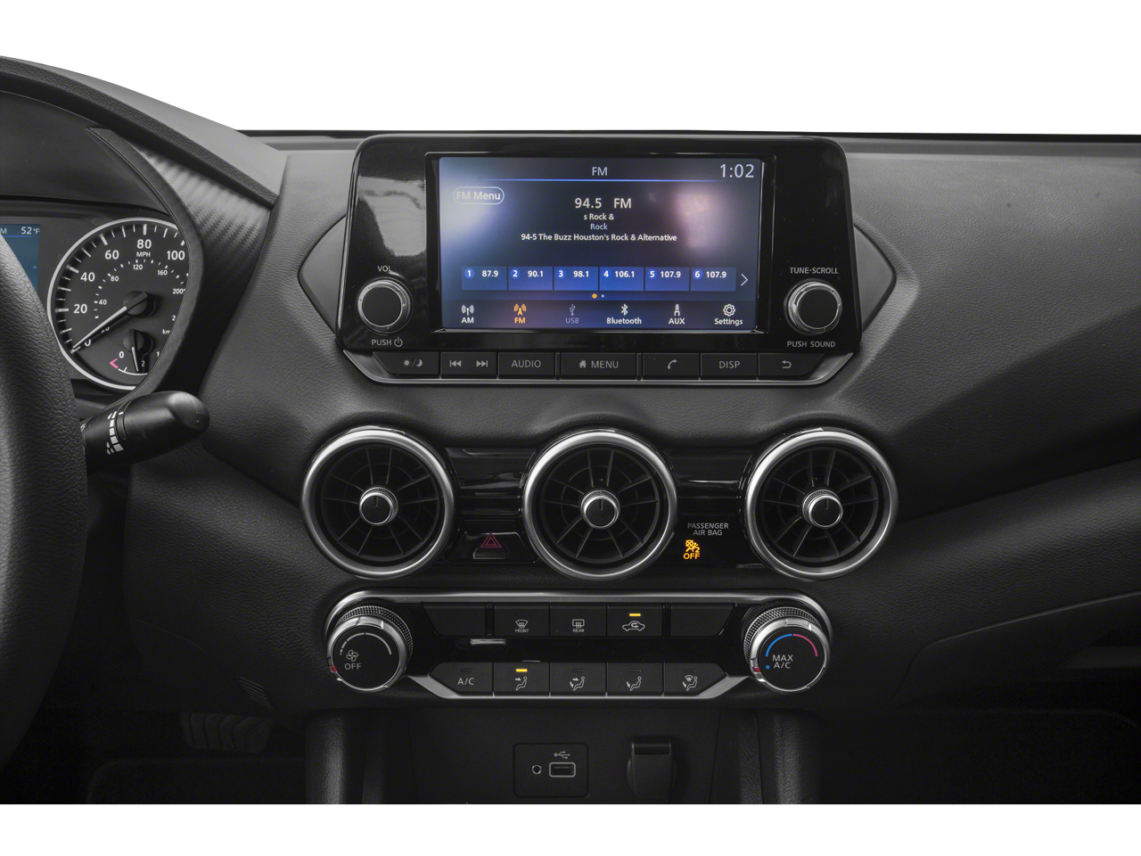 • Radio: AM/FM w/RDS/MP3/Aux-In -inc: 6 speakers plus 2 tweeters in A-pillar, 8" color display w/multi-touch control, streaming audio via Bluetooth®, Bluetooth® hands-free phone system, hands-free text messaging assistant, Siri eyes free, Google Assistant voice recognition w/Apple CarPlay and Android Auto, NissanConnect, (1) front USB connection port (type A), (1) additional front USB (type C) and (1) charge-only USB (type A) center console and SiriusXM radio w/advanced audio features