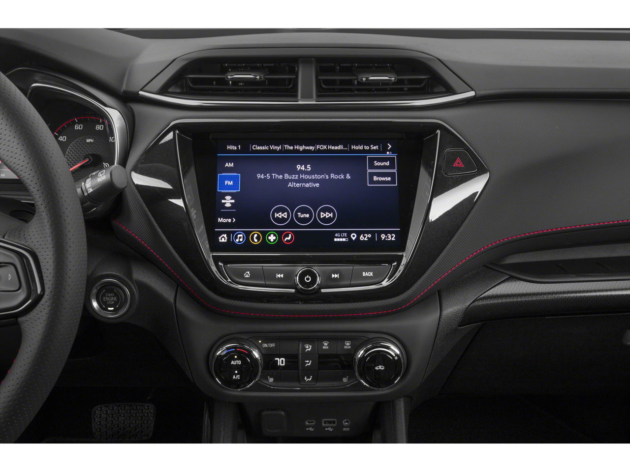 CONVENIENCE PACKAGE includes (C68) automatic climate control air conditioning, (UIJ) 8" diagonal color touchscreen display, (USS) one type-A and one type-C charging only USB ports, (KI6) 120-volt power outlet, (DD8) inside rearview auto-dimming mirror and (DMS) driver and front passenger illuminated vanity mirrors, covered, sliding visors, AUDIO SYSTEM, CHEVROLET INFOTAINMENT 3 SYSTEM 7" diagonal color touchscreen, AM/FM stereo. Additional features for compatible phones include: Bluetooth® audio streaming for 2 active devices, voice command pass-through to phone, Apple CarPlay and Android Auto capable. (8" screen when (ZL3) Convenience Package and (ZL5) Driver Confidence Package are ordered.) (STD) , STERLING GRAY METALLIC, SENSOR, CABIN HUMIDITY, SEATS, FRONT BUCKET (STD), RS PREFERRED EQUIPMENT GROUP Includes Standard Equipment, REAR CROSS TRAFFIC ALERT, POWER OUTLET, 120-VOLT located on rear of front console, MOSAIC BLACK METALLIC TWO-TONE ROOF, MIRROR, INSIDE REARVIEW AUTO-DIMMING.
