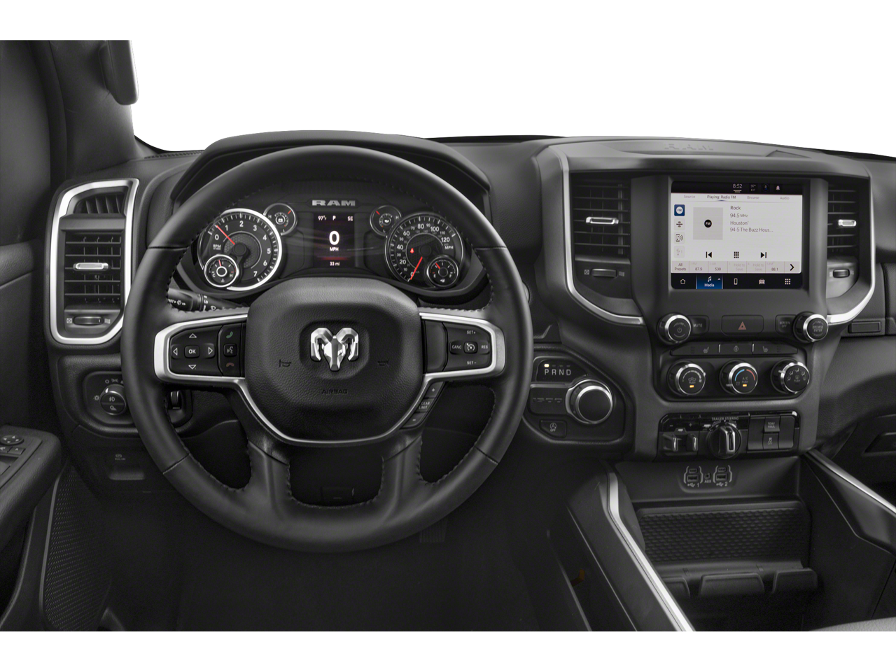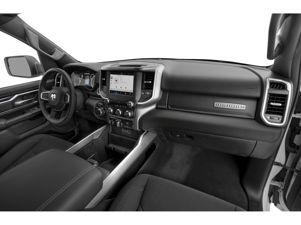 QUICK ORDER PACKAGE 27Z BIG HORN -inc: Engine: 5.7L V8 HEMI MDS VVT eTorque, Transmission: 8-Speed Automatic (8HP75), Big Horn Badge , REAR WHEELHOUSE LINERS, RADIO: UCONNECT 5 NAV W/12.0" DISPLAY -inc: Google Android Auto, USB Host Flip, Disassociated Touchscreen Display, HD Radio, Integrated Center Stack Radio, For More Info, Call 800-643-2112, Connectivity - US/Canada, 12" Touchscreen Display, GPS Navigation, 4G LTE Wi-Fi Hot Spot, SiriusXM w/360L, All Radio Equipped Vehicles, Connected Travel & Traffic Services, All R1 High Radios, Apple CarPlay, PREMIUM LIGHTING GROUP -inc: Front LED Fog Lamps, LED Reflector Headlamps, LED Taillamps, PARKSENSE FRONT/REAR PARK ASSIST W/STOP, MONOTONE PAINT, MANUFACTURER'S STATEMENT OF ORIGIN, ENGINE: 5.7L V8 HEMI MDS VVT ETORQUE -inc: Active Noise Control System, Heavy Duty Engine Cooling, Passive Tuned Mass Damper, Dual Rear Exhaust w/Bright Tips, HEMI Badge, 23 Gallon Fuel Tank, 18" Aluminum Spare Wheel, DUAL-PANE PANORAMIC SUNROOF -inc: Premium Overhead Console, Dome Dual LED Reading Lamp, Overhead LED Lamps, BLACK, DELUXE CLOTH BUCKET SEATS -inc: Power 8-Way Driver Seat, Center Console Parts Module, Bucket Seats, Manual Adjust 4-Way Front Passenger Seat, Full Length Floor Console, Rear Center Armrest, Power 2-Way Driver Lumbar Adjust.